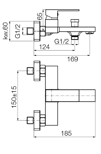 Valvex Ars bateria wannowa ścienna kolor grafit szczotkowany ( Gun Metal ) 2419870