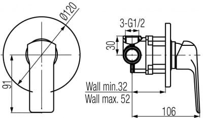 Valvex Aurora bateria natryskowa podtynkowa ścienna, Chrom 2445160