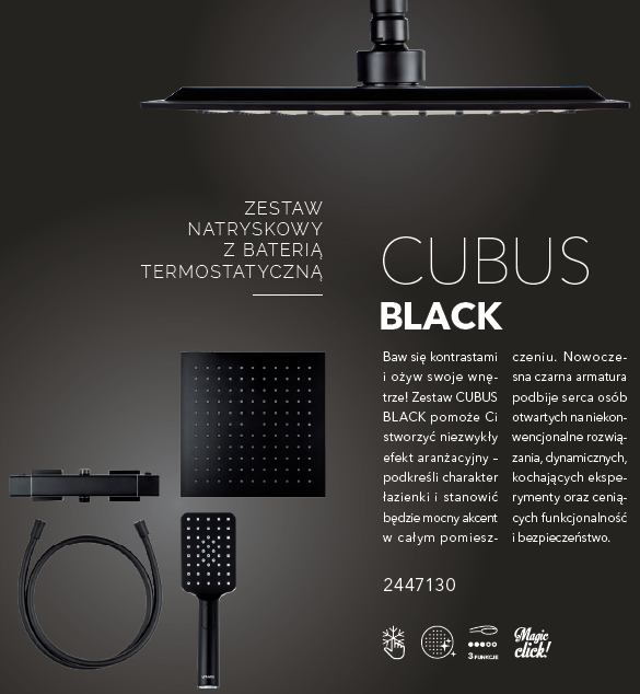 Dane techniczne - Valvex Cubus Black zestaw prysznicowy termostatyczny czarny mat 2447130