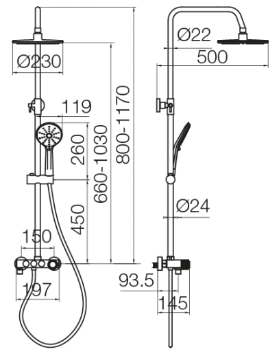 Zestaw natryskowy Valvex Decor Black - wymiary