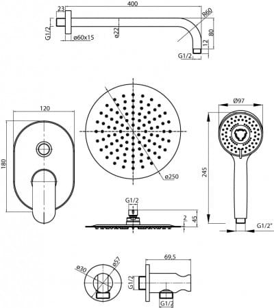 • okrągła deszczownica o średnicy 250mm,