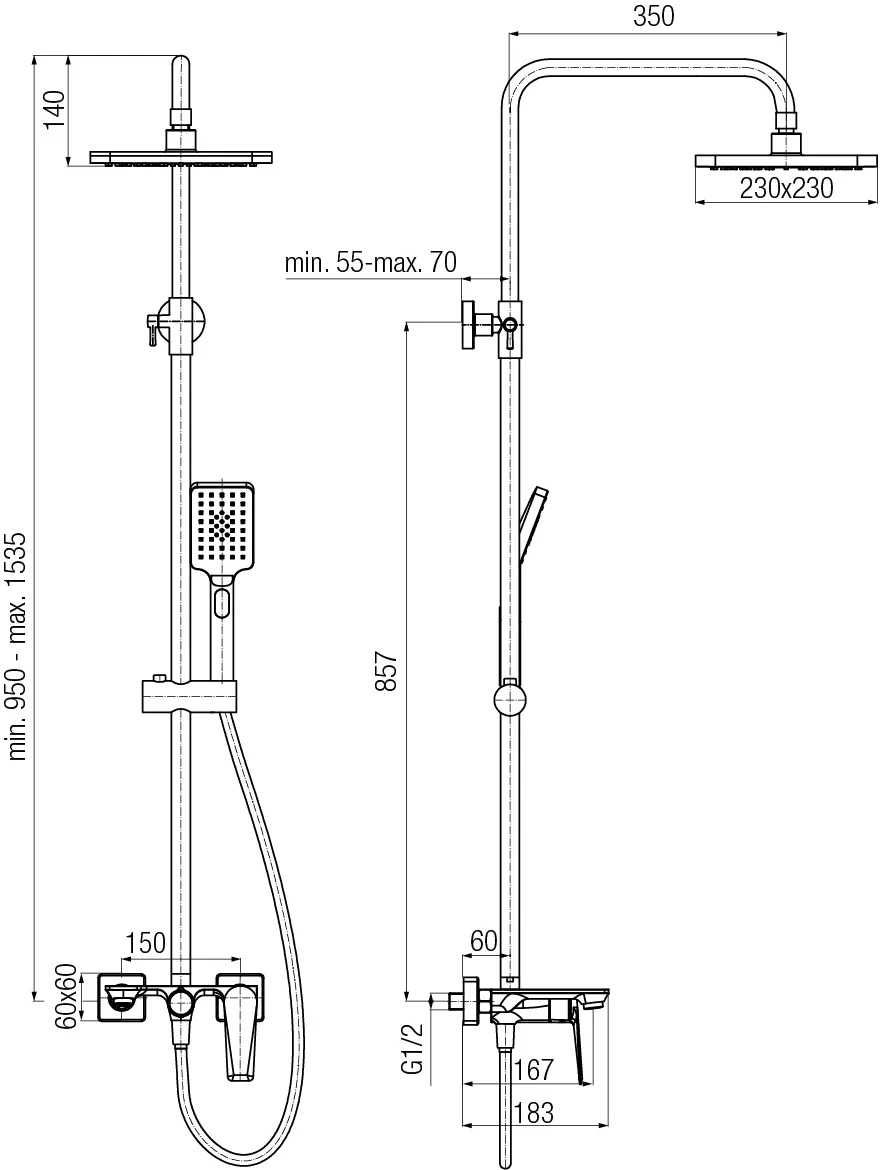 Kolumna natryskowa czarna z wylweką Valvex Esto Black 2414390 - wymiary: