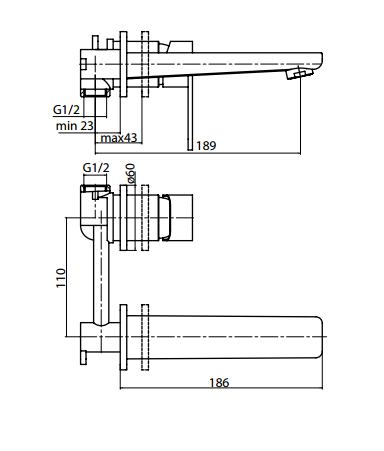 - Długość wylewki 189 mm,