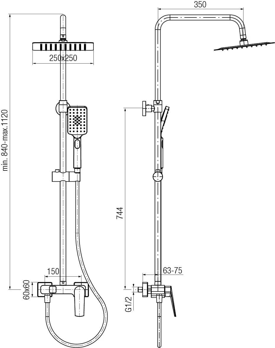Zestaw natryskowy Valvex Soho chrom- wymiary: