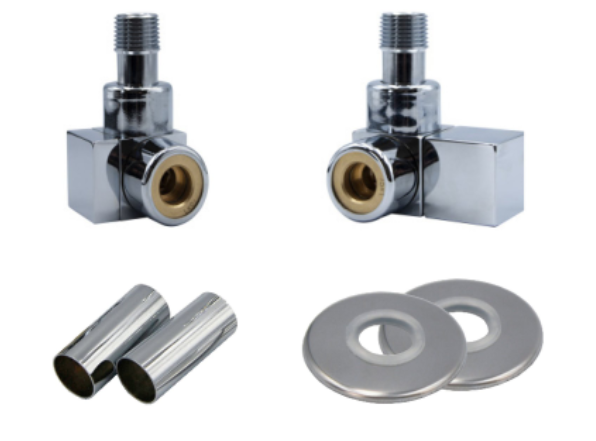 - w komplecie: zawór regulacyjny, zawór odcinający, 2x rozeta maskująca, 2x tuleja maskująca, 2x adaptery (do wyboru PEX 16x2 lub Cu miedź),
