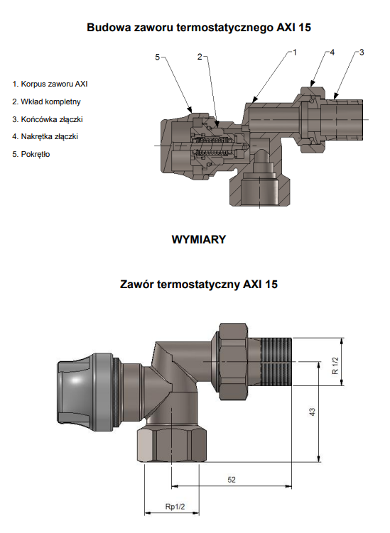 - zawór aksjalny umożliwia montaż głowicy równolegle do grzejnika,