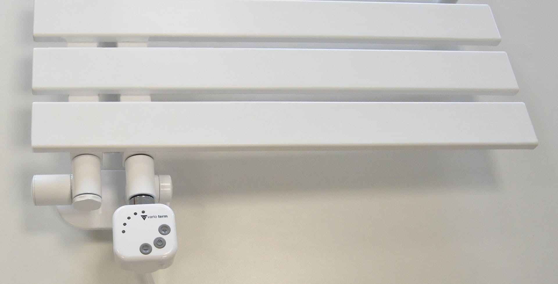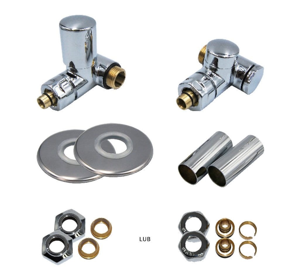 Varioterm INTEGRA All in One zestaw regulacyjny kątowy, osiowo lewy z możliwością podłączenia grzałki elektrycznej z elementami maskującymi i adapterami, kolor biały AIR06FK/L