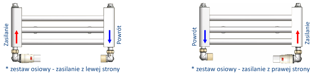 - zawór regulacyjny montowany na grzejniku po stronie przewodu zasilającego,