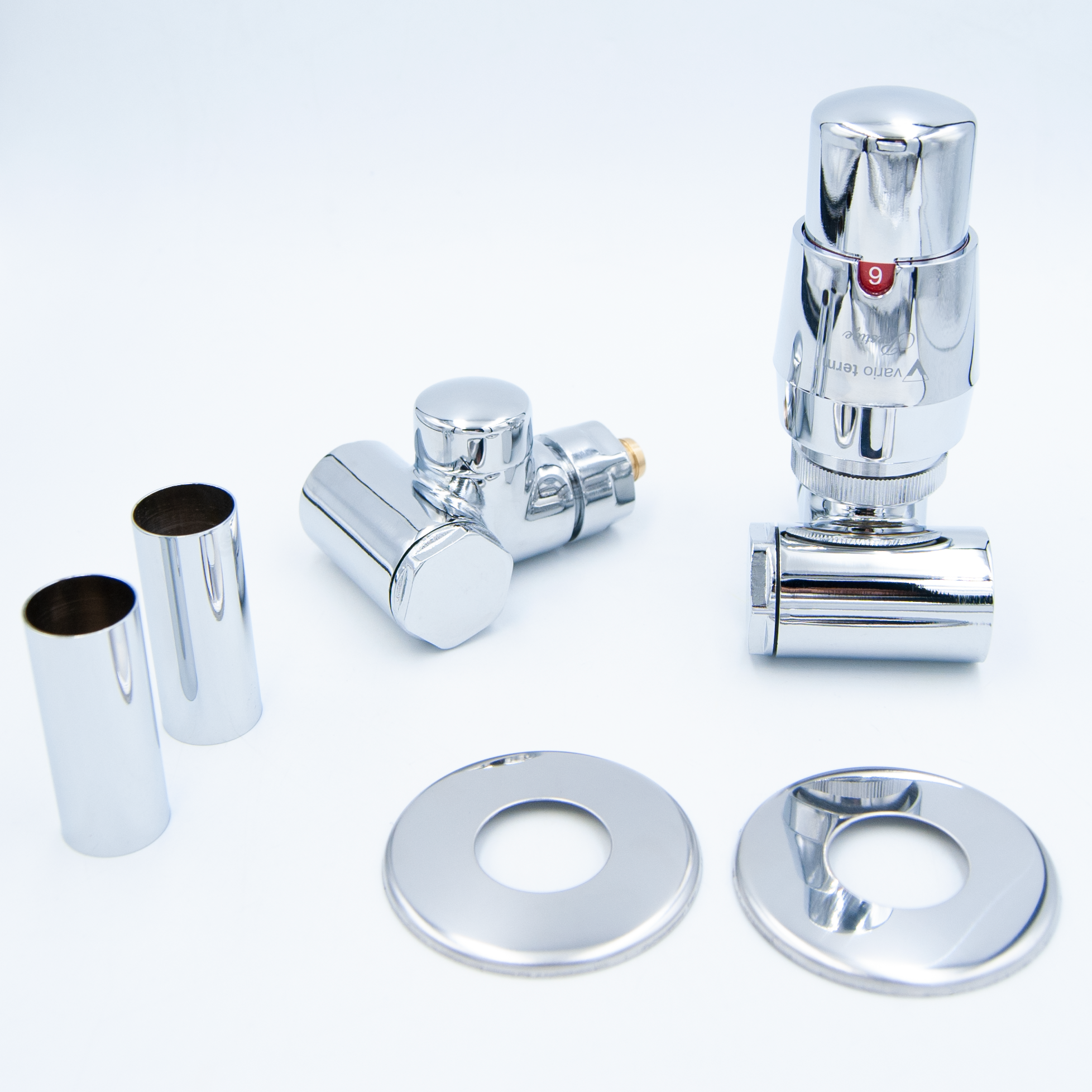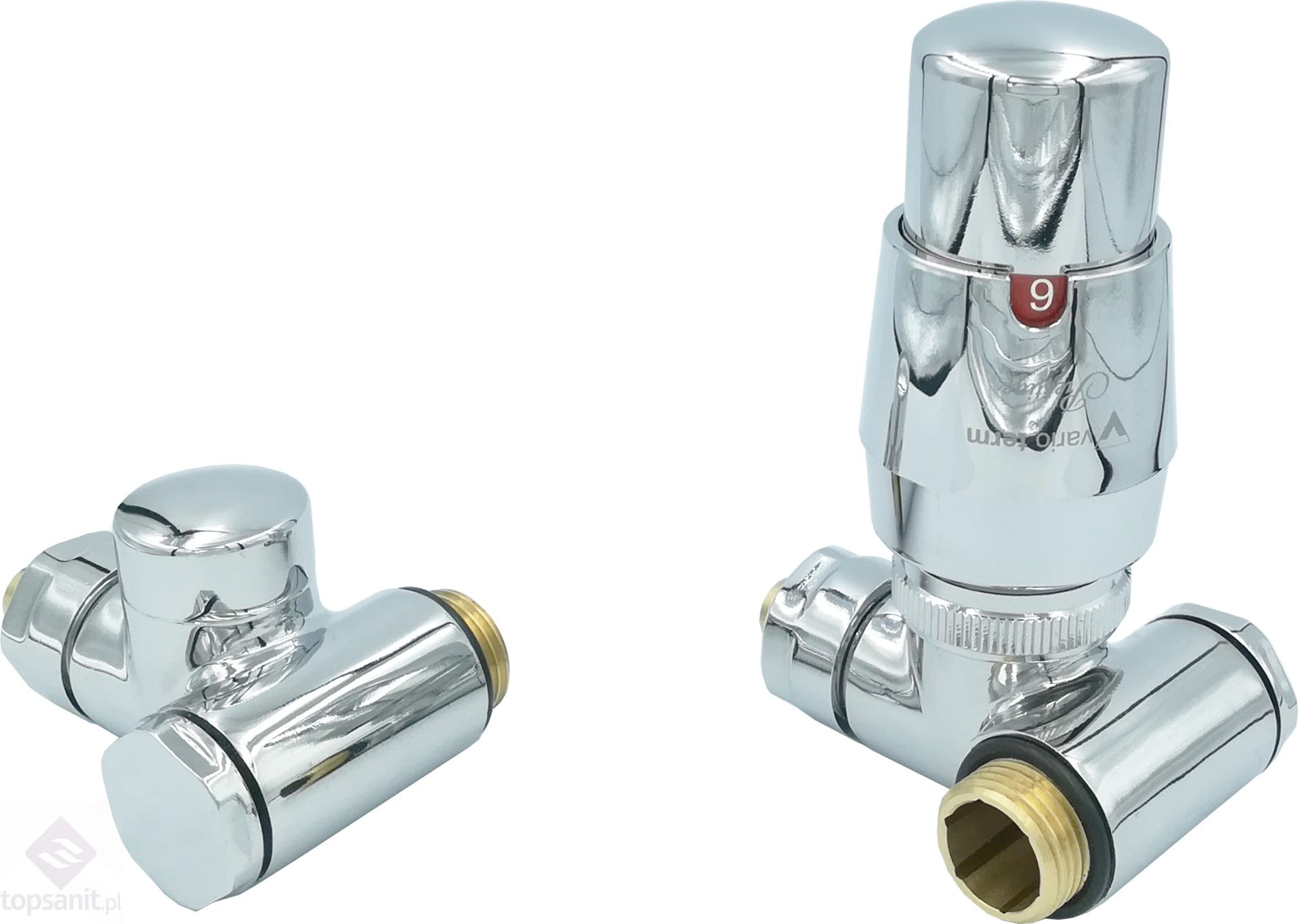 Varioterm INTEGRA All in One zestaw termostatyczny kątowy, osiowo lewy z możliwością podłączenia grzałki elektrycznej z elementami maskującymi i adapterami, kolor kolor chrom, AIGS0202CFK/L