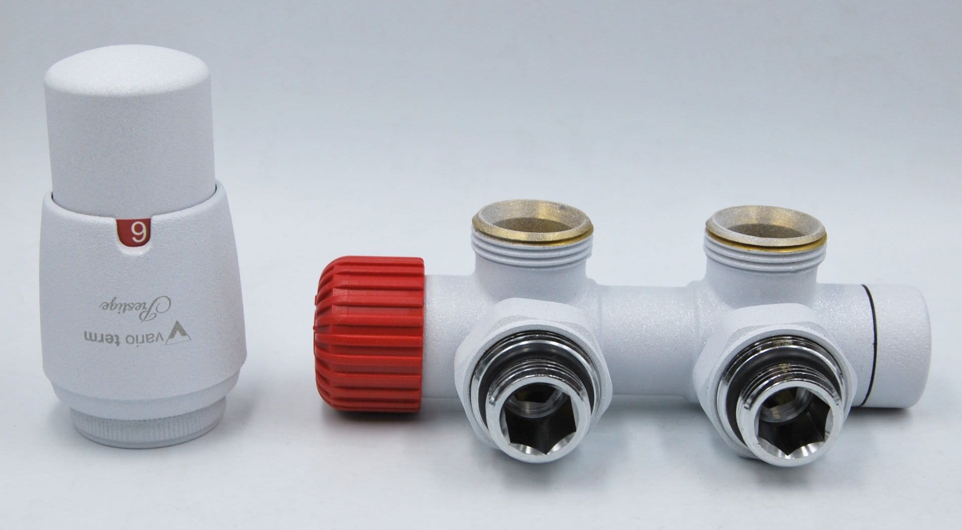 Varioterm TWINS All in One zintegrowany zestaw termostatyczny, z elementami maskującymi i adapterami (złączki zaciskowe) wersja lewa kolor biały strukturalny ATSGS0219CFK/L