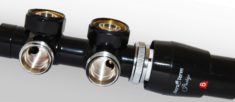 Varioterm TWINS All in One zintegrowany zestaw termostatyczny, z elementami maskującymi i adapterami (złączki zaciskowe) wersja prawa kolor czarny błyszczący ATSGS0213CFK/P
