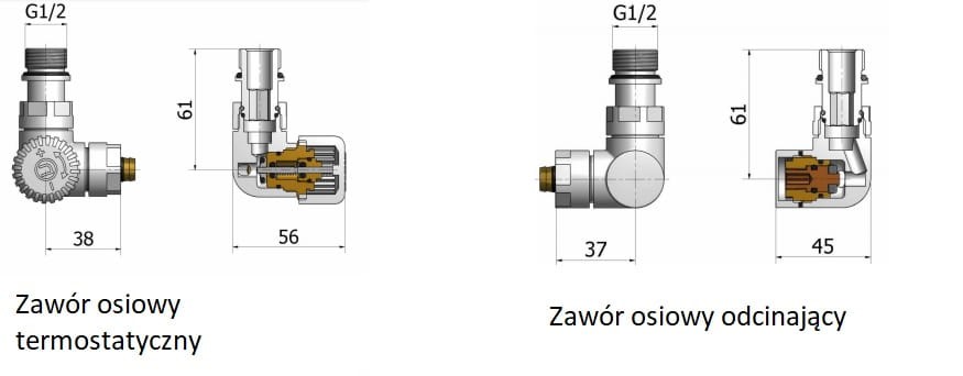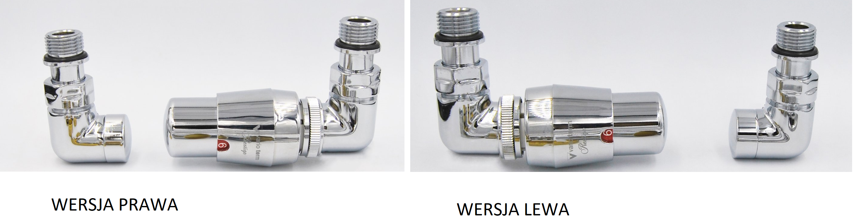 - w komplecie: głowica termostatyczna, zawór termostatyczny, zawór odcinający, 2x rozeta maskująca, 2x tuleja maskująca, 2x adaptery (do wyboru PEX 16x2 lub Cu miedź),