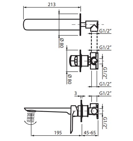 Stojąca bateria umywalkowa podtynkowa Vedo Aletta Spazzo- wymiary: