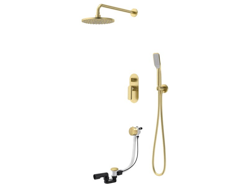 Vedo Aletta Spazzo podtynkowy zestaw wannowo-natryskowy z mieszaczem, z napełnianiem przez przelew, deszczownica 25 cm, kolor złoty szczotkowany VBA5232/25/SZ