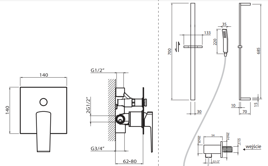 Zestaw natryskowy podtynkowy Vedo Sette - właściwości