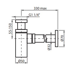 Syfon umywalkowy Vedo Uno, kolor chrom VSY1010/CH - właściwości: