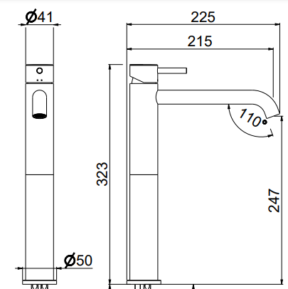 Chromowana bateria umywalkowa V27021/K- wymiary