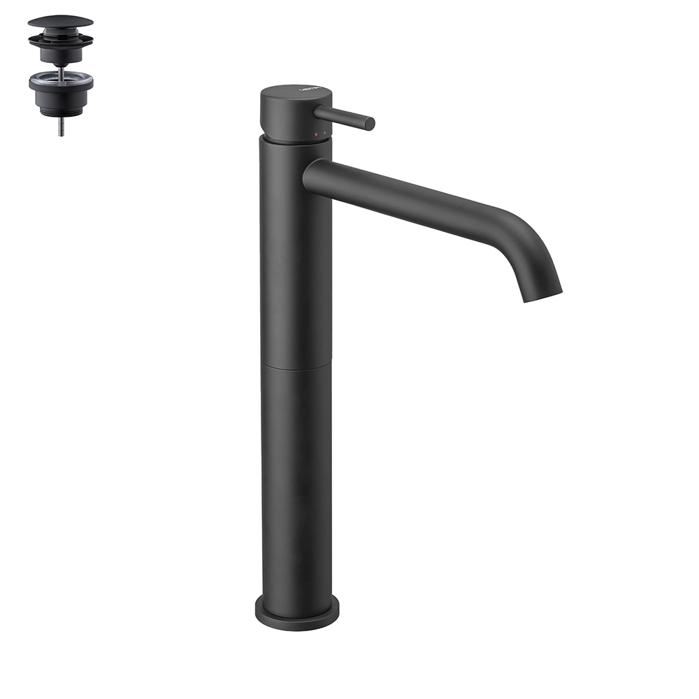 Vema Maira bateria umywalkowa wysoka korek klik-klak, kolor czarny mat V27021/K/CZAR