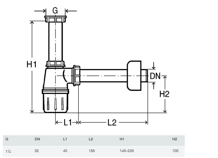 Syfon umywalkowy butelkowy Viega 108694 / 703219 - cechy produktu: