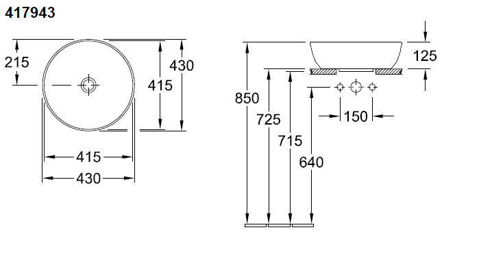 Umywalka nablatowa Villeroy & Boch Artis 41794301 ø 43 cm bez przelewu, Weiss Alpin - cechy produktu: