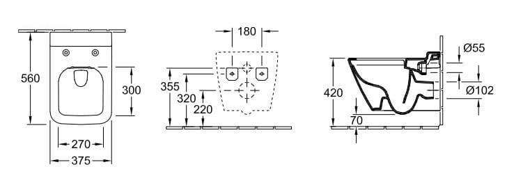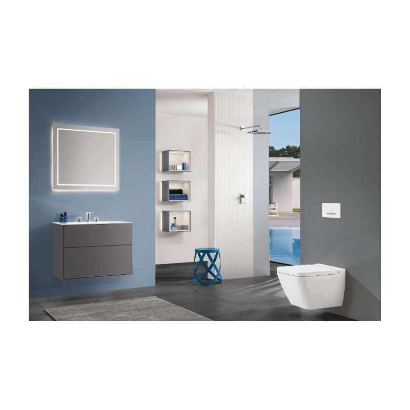 Direct Flush, czyli system bezrantowy Villeroy&Boch oparty na innowacyjnych dyszach spłukujących zapewniających optymalny kierunek wody oraz osłonie zapobiegającej wychlapywaniu się wody z miski. Konstrukcja miski WC pozbawiona jest wewnętrznego kołnierza. Techonologia bezrantowa Villeroy&Boch DirectFlush to bezinwazyjne spłukiwanie z maksymalna higieną. Brak wewnętrznego kołnierza zapewnia dostęp do całego wnętrza misy WC. Najwyższy poziom higieny, który zapewnia dokładne czyszczenie misy bez rozprysku. Strumień wody opłukuję całe wnętrze miski wc, a dysze wody rozprowadzają wodę po całej powierzchni przy oszczędnym zużyciu wody 3 lub 4,5 litra.