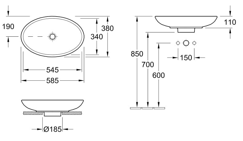Cechy produktu - Umywalka nablatowa Villeroy&Boch Loop & Friends 51510001 585 x 380 mm z przelewem kolor biały (Weiss Alpin)