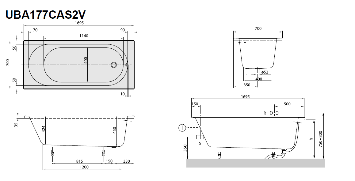 - odpływ o średnicy 52 mm