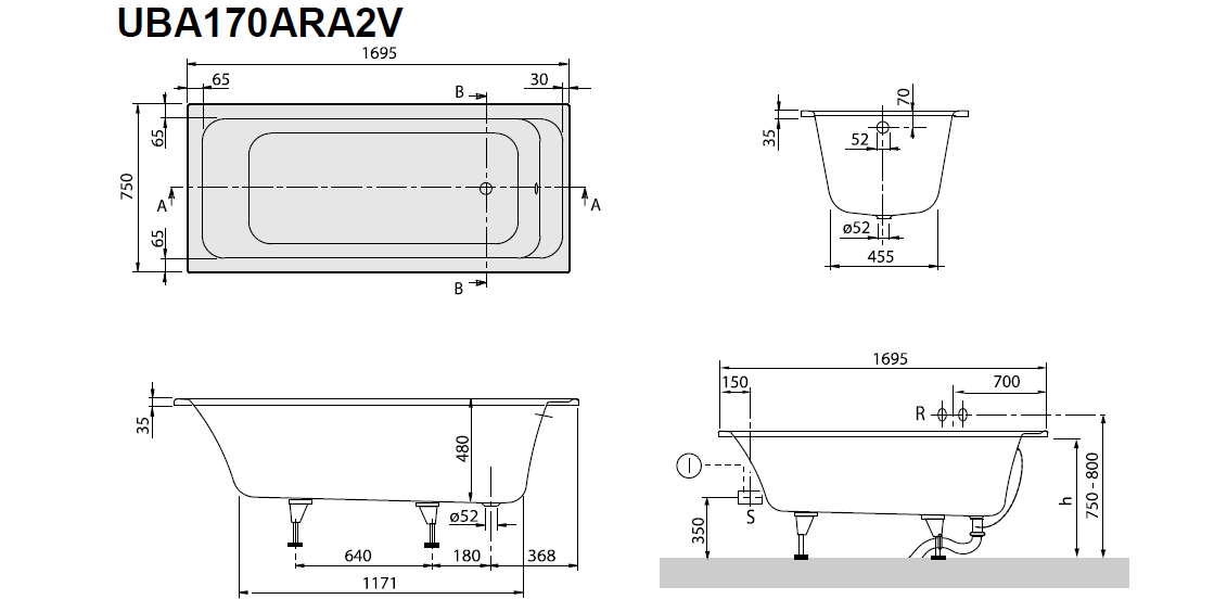 Wanna prostokątna Villeroy & Boch Omnia Architectura 170x75 cm UBA170ARA2V-01