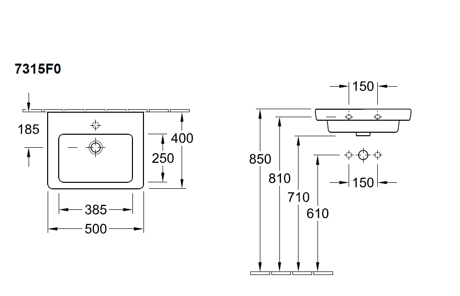 Villeroy & Boch SUBWAY 2.0 Umywalka ceramiczna,mała, 50 x 40 cm, 7315F001