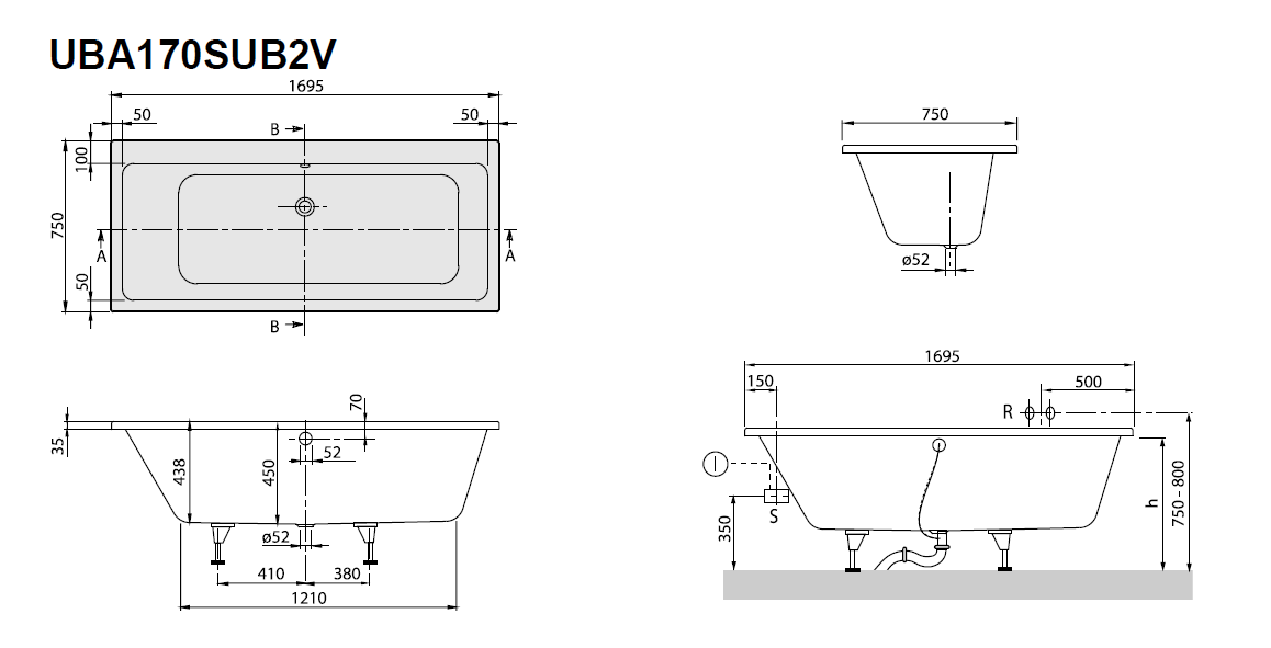Wanna prostokątna Villeroy & Boch SUBWAY, Wanna akrylowa UBA170SUB2V01
