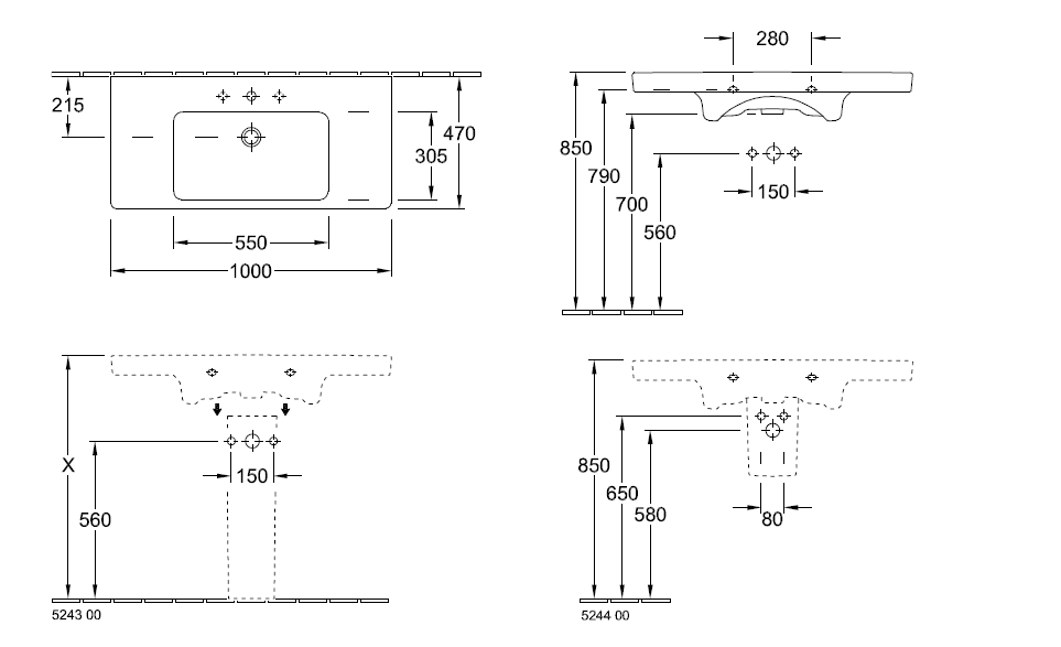 Villeroy & Boch Subway 2.0 Umywalka meblowa, 100 x 47 cm, z przelewem, Weiss Alpin, 7175A001