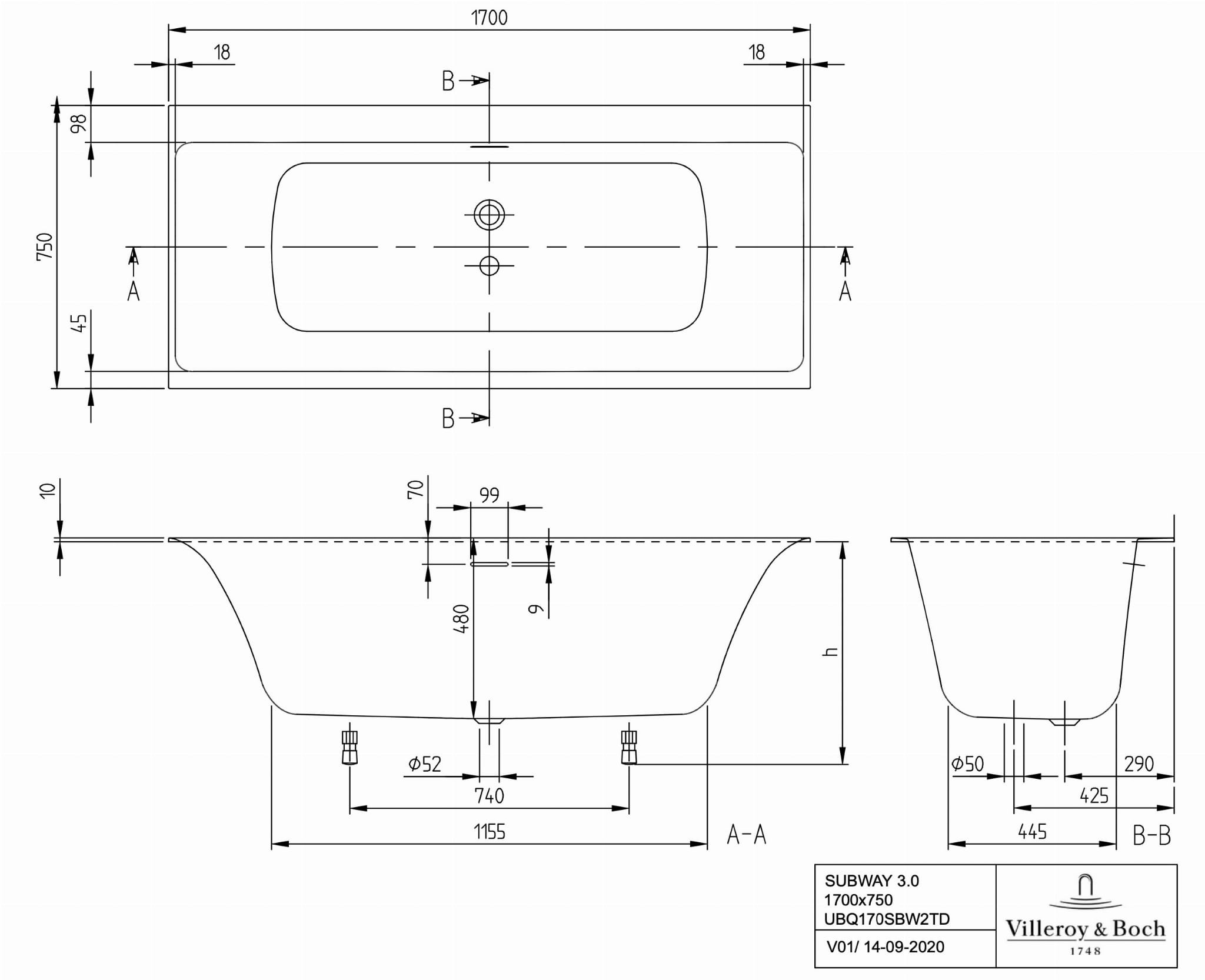Wanna 175x70 Villeroy & Boch Subway 3.0 - wymiary