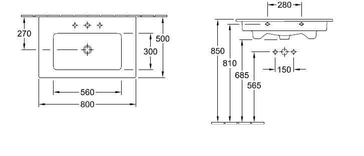 Umywalka meblowa Villeroy & Boch Venticello, 80 x 50 cm, z przelewem, Weiss Alpin, 41048L01