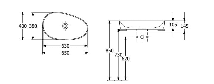 Nablatowa umywalka Antao- wymiary: