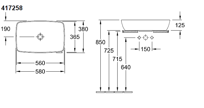 Villeroy&Boch Artis Umywalka stojąca na blacie, 58 x 38 cm, bez przelewu, Weiss Alpin, 41725801