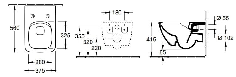 Cechy produktu - zestaw miska z deską Combi-Pack Villeroy&Boch Collaro DirectFlush 4626RS01