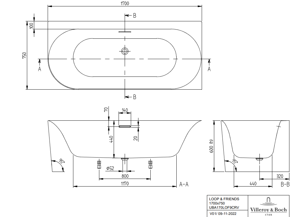 Villeroy&Boch Loop&Friends Embrace wanna wolnostojąca narożna prawa 170x75cm, powierzchnia antypoślizgowa kolor biały (Weiss Alpin) UBA170LOF9CR00V-01