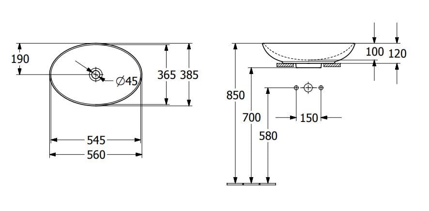 | Umywalka stawiana na blat (nablatowa) | Tak |