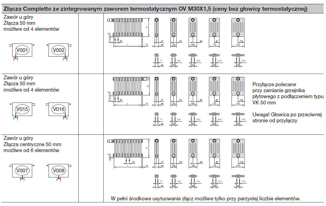 - Złącza Completto z zintegrowaną wkładką termostatyczną OV M30x1,5,