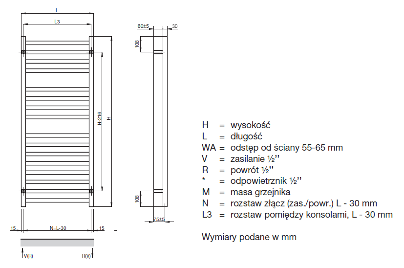 - Kolor: Biały lub do wyboru z palety Zehnder (Architectural).