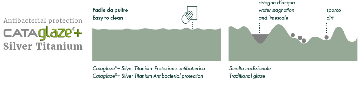 Kolekcja Colori Catalano pod ochroną ! CATAGLAZE® + Srebro-Tytan - Ochrona Antybakteryjna 99,99%. Jest ulepszeniem systemu szklenia Cataglaze. Bardziej odporna na osadzanie się kamienia