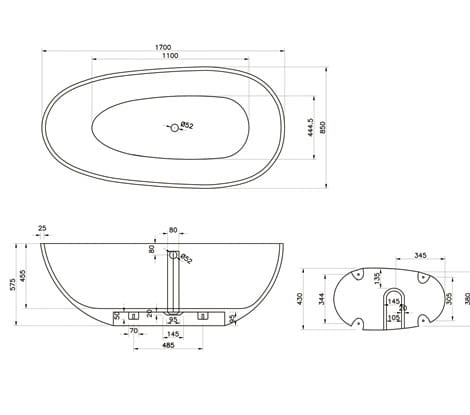 Cechy produktu - Wanna wolnostojąca Sanniti Tre XL 170x85 cm, marmur (Mineralicast) kolor biały 11031100